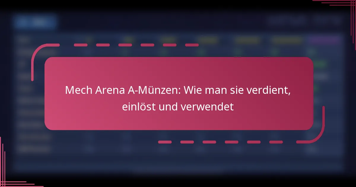 A-Coins sind eine Premium-Spielwährung in Mech Arena, die für den Erwerb von Verbesserungen und Gegenständen, die das Gameplay verbessern, unerlässlich sind. Um A-Coins effektiv zu nutzen, sollten die Spieler Käufe priorisieren, die unmittelbare Bedürfnisse ansprechen, während sie auch langfristige Vorteile in Betracht ziehen, um einen ausgewogenen Ansatz für das Ressourcenmanagement sicherzustellen. Was sind A-Coins in Mech Arena? A-Coins sind eine Premium-Spielwährung in Mech Arena, die hauptsächlich zum Kauf verschiedener Verbesserungen und Gegenstände verwendet wird, die das Gameplay verbessern. Sie spielen eine entscheidende Rolle in der Spielwirtschaft und ermöglichen es den Spielern, auf exklusive Inhalte und Upgrades zuzugreifen, die ihre Gesamterfahrung…
